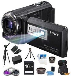 Record full HD 1920 x 1080p video plus shoot 20.4MP photos with the HDR-PJ580V Handycam camcorder. Share your memories anytime, anywhere with the built-in projector. Advanced Manual controls enhance creativity and CinemaTone presets provide cinema quality shooting. Store up to 11 hours of recording with built-in 32GB memory. 1920x1080 Full HD 60p/24p Recording w/20.4 MP still image Project up to 100 inch (diag) videos with built-in projector Up to 11 hours of recording with 32GB1 embedded Flash Memory Optical SteadyShot image stabilization w/ Active Mode CinemaTone presets and 24p recording for cinematic quality video Advanced controls with expanded focus, zebra, and peaking Wide Angle G Lens to capture everything you want Back-illuminated Exmor RCMOS sensor for superb low-light video 12x Optical/20x Extended Zoom to get even closer to the action 3.0 inch Xtra Fine LCD display (921K) w/TruBlack technology Manual Control (Iris/Shutter/Exposure/White Balance) Face detection with voice enhancement and noise reduction Tracking Focus follows selected subjects 5.1ch Surround mic for vivid and dynamic surround sound Auto wind noise reduction for clear voice recording Expanded recording/monitoring with mic/headphone jack Active Interface Shoe to attach intelligent accessories Event Browse groups video/stills by events automatically Highlight Playback creates movies with transitions for you S-Master digital amplifier for true and dynamic sound Clear Phase stereo speakers for true-to-life audio playback Geotagging with built-in GPS receiver & NAVTEQmaps Direct Copy to external HDD without PC Built-in USB cable for easy file transfer/charge Intelligent Auto (180 different scene combinations possible) Golf Shot Built-in Flash 1920x1080 Full HD 60p Recording w/20.4MP still image capture The Sony HDR-PJ580V offers 1920 x 1080 high definition resolution letting you record your memories in exceptional Full H...