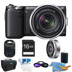 Product Description: Get the interchangeable lens camera of your dreams capable of capturing astonishing 16.1MP stills or full 1920x1080 HD video in about half the size as its DSLR counterparts. It's the interchangeable lens camera that fits in your pocket. Enjoy Full HD 1080/60p or 24p movies, astounding low-light pictures, continuous shooting up to 10 fps, incredible panorama shots and a 3.0-inch tiltable Live View touch screen LCD. Use the Photo Creativity Touch interface to easily adjust images on the go or try out Sweep Panorama for incredible landscapes in 2D or 3D. Answer a call to creativity with the included E-mount 18-55mm zoom lens, ideal for capturing close-up portraits and vast landscapes. DSLR quality in your pocket - This is the world's smallest interchangeable lens digital still camera using a large APS-C size sensor (as of Aug 2011). The removal of the conventional mirror box and viewfinder results in a camera body that is about half the size and weight of a standard DSLR camera. Full HD movie shooting 60p/24p - Record Full HD 1920x1080 video in a variety of frame rates from 60p for super smooth action to 24p for a more cinematic feel.1 The NEX-5N utilizes the AVCHD codec, the industry standard for high quality HD video capture, as well as the MP4 codec for easy upload to the web due to it's smaller file size. Object Tracking AF via Touch LCD - Object Tracking AF can lock onto a specified object and maintain focus even as the subject moves. This hassle-free mode allows unpredictable subjects to stay in focus even while zooming. Letting you concentrate on the scene and composition without having to worry about focus. The subject on which to lock focus is easily selected via the touch screen or the center button of the control wheel. 11 Picture Effect modes - There are 11 picture effects modes to choose from: Posterization (Color, B/W), Pop Color, Retro Photo, Partial Color (Red, Green, Blue, Yellow), Soft High-key, High Contras...